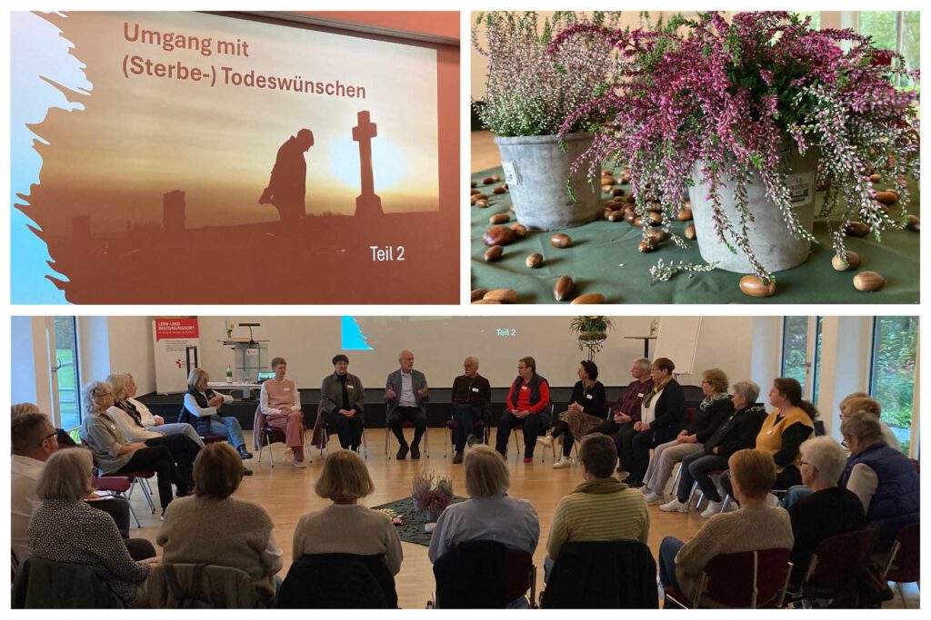 In unserem Seminar wurde auch anhand eigener Erfahrungen auf die unterschiedlichen Ursachen geschaut, die das Entstehen von Todeswünschen begünstigen. Es wurden die verschiedenen Erscheinungsformen besprochen und auch der professionelle Umgang erläutert. Dabei konnten auch die Perspektiven der Versorgenden und uns Begleitenden ausreichende Berücksichtigung finden.